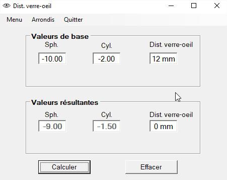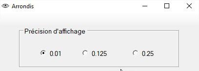La fenêtre Arrondis permet de choisir la précision de l'affichage: par 0.01 D, 0.125 D ou 0.25 D
