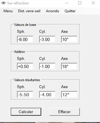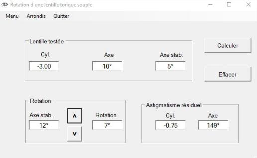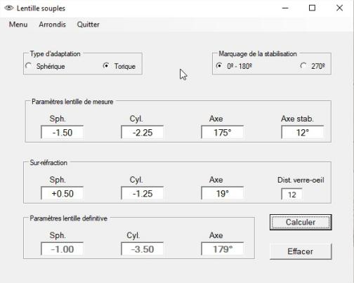 Pour le calcul d'une lentille torique en fonction de la sur-réfraction et de l'axe de stabilisation.