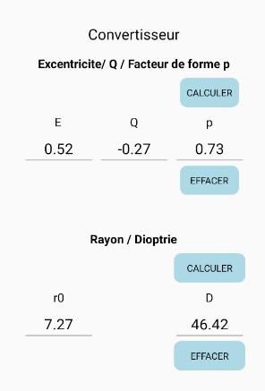 Conversion des valeurs de rayons cornéens mm et dioptries