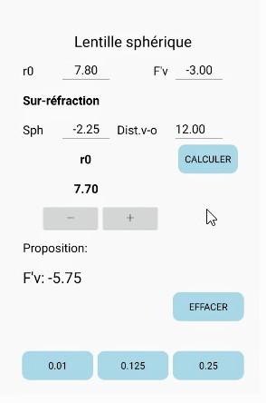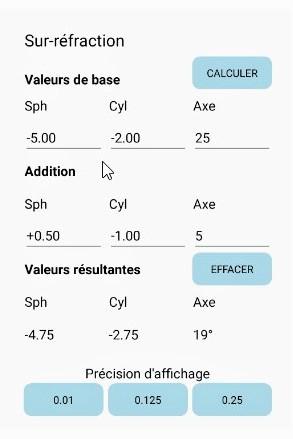 Sur-réfraction : calcul de la puissance résultante suite à la suite d'une sur-réfraction sur un verre de lunettes.