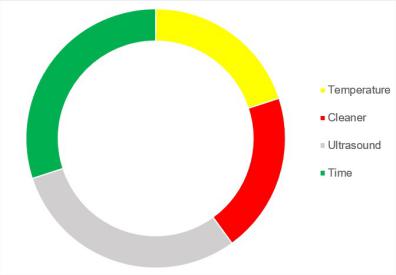In the case of RGP lenses, the mechanical action is fixed by ultrasound frequency. The temperature can be increased to a certain limit. A decrease or even a removal of the detergent must be compensated by an increase in time.